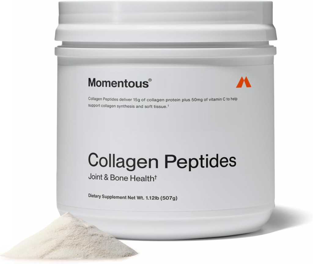 - Momentous Grass-Fed Collagen Peptides Powder Designed for athletes, this supplement combines bovine collagen with Fortigel, a clinically researched formula aimed at promoting collagen synthesis in tendons and ligaments. It also includes vitamin C to support overall collagen production. View on Amazon