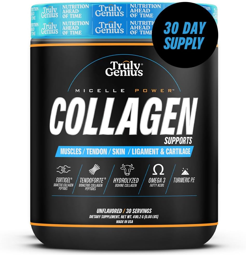 - Truly Genius Collagen Peptides Powder Enriched with omega-3s, vitamins C and E, this collagen powder supports joint health, muscle recovery, and overall wellness. Users have reported improvements in joint comfort and hair and nail strength. View on Amazon